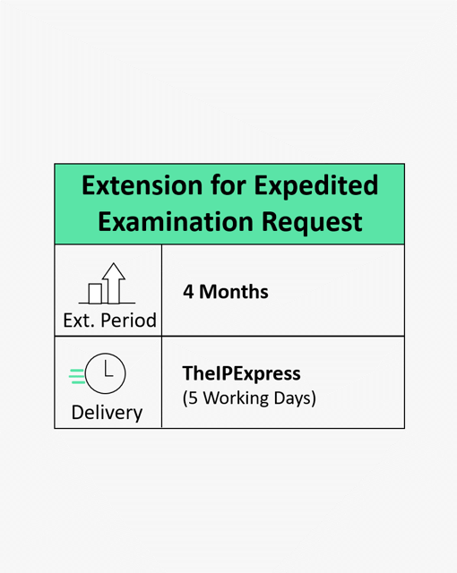 This service enables patent applicants to request an extension for submitting documents related to an expedited examination. Expedited examinations accelerate the patent process, and applicants must adhere to stricter timelines.