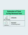 66f047c43ba2f300246ba335Extension of Time to Pay Renewal Fees Six MonthsRequest for extension of time to pay renewal fees or submit pending documents. Applicable Rule/Section: Section 53(2), Section 142(4), Rule 13(6), Rule 80(1A), Rule 130 Note: Includes Patent Office FeesTIPMP-ACD-PAT-UP-PPR-DM-6M-STD-0001