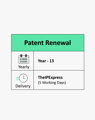 66e7ba470cb6910025fce8caPatent Renewal Year 13Renewal of Patent before the expiration of the Year - 12, from the date of your patent to cover the year - 13.Ensure your patent remains active without any penalties.TIPMP-ACD-PAT-UP-RENEW-YR-EXP-0013