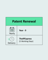 66e7ba3ba48f5203acc1aa5bPatent Renewal Year 9Renewal of Patent before the expiration of the Year - 8, from the date of your patent to cover the year - 9.Ensure your patent remains active without any penalties.TIPMP-ACD-PAT-UP-RENEW-YR-EXP-0009