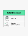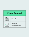 66e7b0b6ac9f55033db3680cPatent Renewal Year 10Renewal of Patent before the expiration of the Year - 9, from the date of your patent to cover the year - 10.Ensure your patent remains active without any penalties.TIPMP-IND-PAT-UP-RENEW-YR-STD-0010