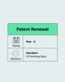 66e7b0b297aa960360895e4fPatent Renewal Year 6Renewal of Patent before the expiration of the Year - 5, from the date of your patent to cover the year - 6.Ensure your patent remains active without any penalties.TIPMP-IND-PAT-UP-RENEW-YR-STD-0006